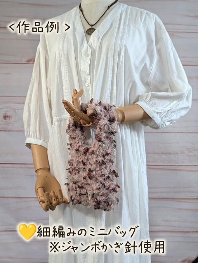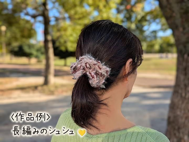 バッグやポーチなどの小物を編んだり、シュシュやタッセルピアスなどのアクセサリーを作ったり、ギフトのラッピングやブーケのリボン代わりにしたりと、使い方のアイデアは無限大。