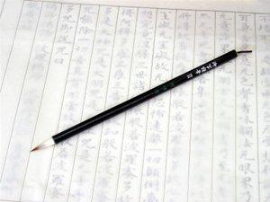 阿吽堂製 穂先:4× 22mm 軸長:7×177mm 写経をするためだけにつくった筆。 職人が手作業で1本1本作っています。筆先が利くので、写経特有の繊細な字を1字1字正確に書くお手伝いをしてくれます。 字の「とめる箇所」「ハネる箇所」「はらう箇所」にキッチリ対応します。