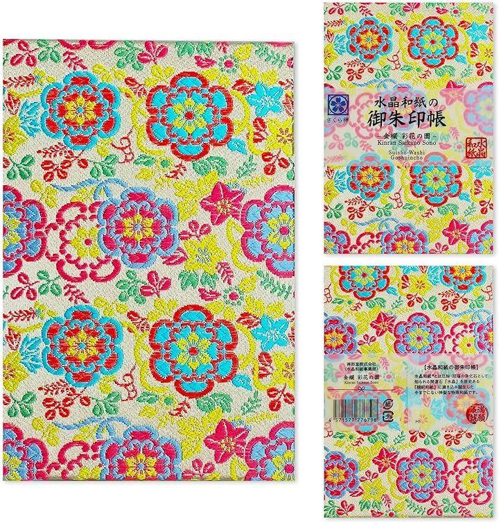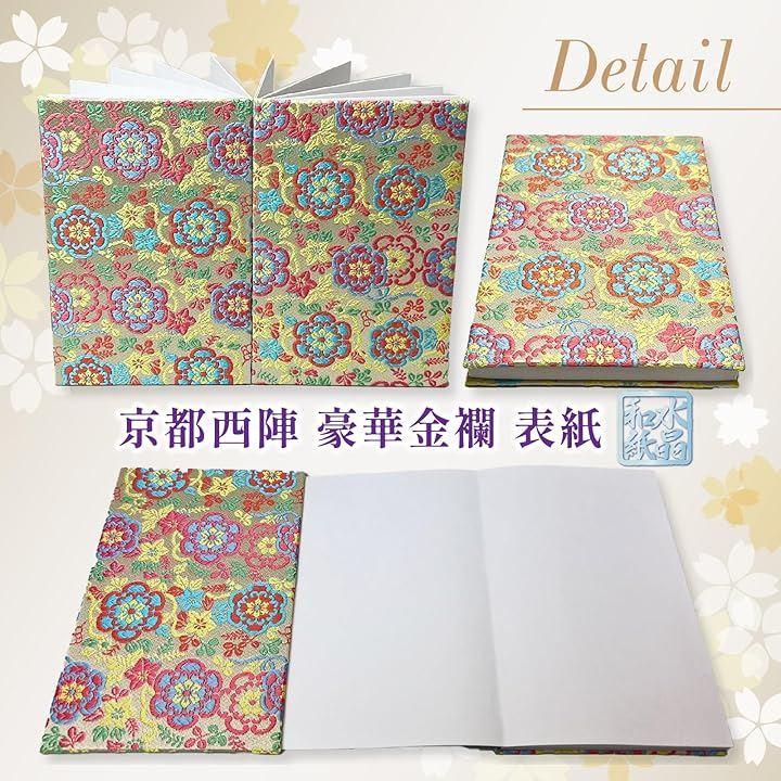 「サイズ」(約)縦18cmx横12cmx厚み1.5cm、重量:約200g 「表紙」京都 西陣 織物 高級金襴 「中紙」水晶入り越前和紙(特殊加工紙)