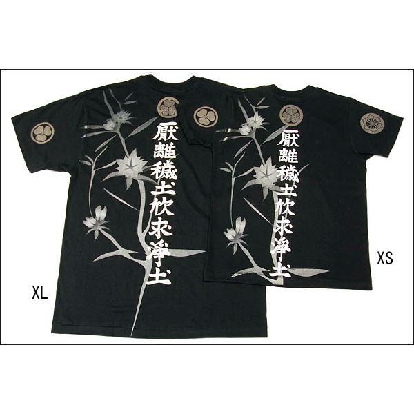 背中には厭離穢土欣求浄土の旗印、そして家康の正室(築山殿)が愛したとされるりんどうで家康の生涯を表現。信長時代はつぼみ、秀吉時代は小さく開いた花、そして関ヶ原の戦いで咲かせた大輪の花。腕には家康を支えた四天王、本多忠勝・井伊直政・榊原康政・酒井忠次の家紋を配置。モノトーンでグラデーションを表現するのが非常に難しく久米繊維さんにも苦労をかけた渾身の1枚です。家康はあまりかっこいいイメージで表現されませんが、是非かっこよく着てみて下さい!""厭離穢土欣求浄土""の意味とは、「戦国の世は、誰もが自己の欲望のために戦いをしているから、国土が穢れきっている。その穢土を厭い離れ、永遠に平和な浄土をねがい求めるならば、必ず仏の加護を得て事を成す」との意味。