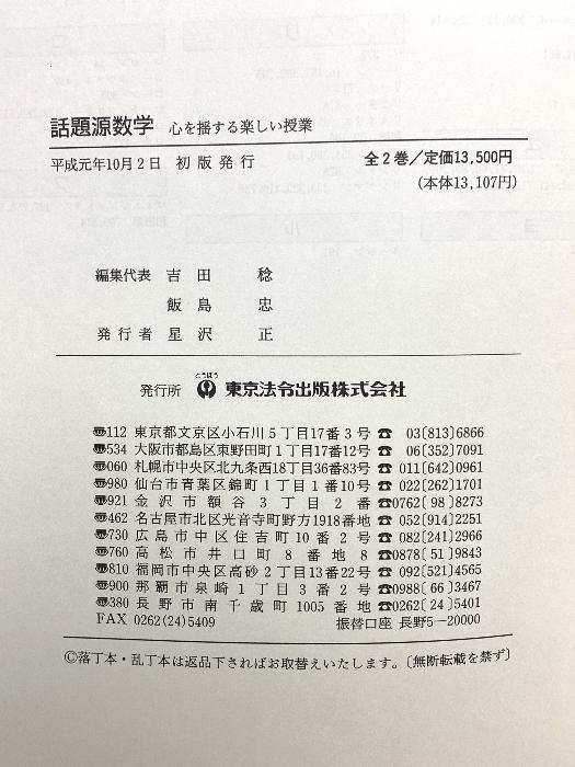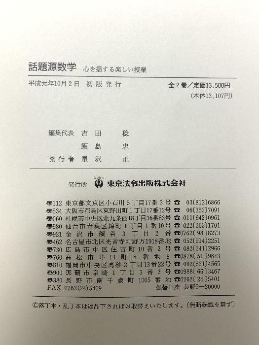 心を揺する楽しい授業 話題源数学 東京法令出版 飯島忠 吉田稔 (上下巻セット)