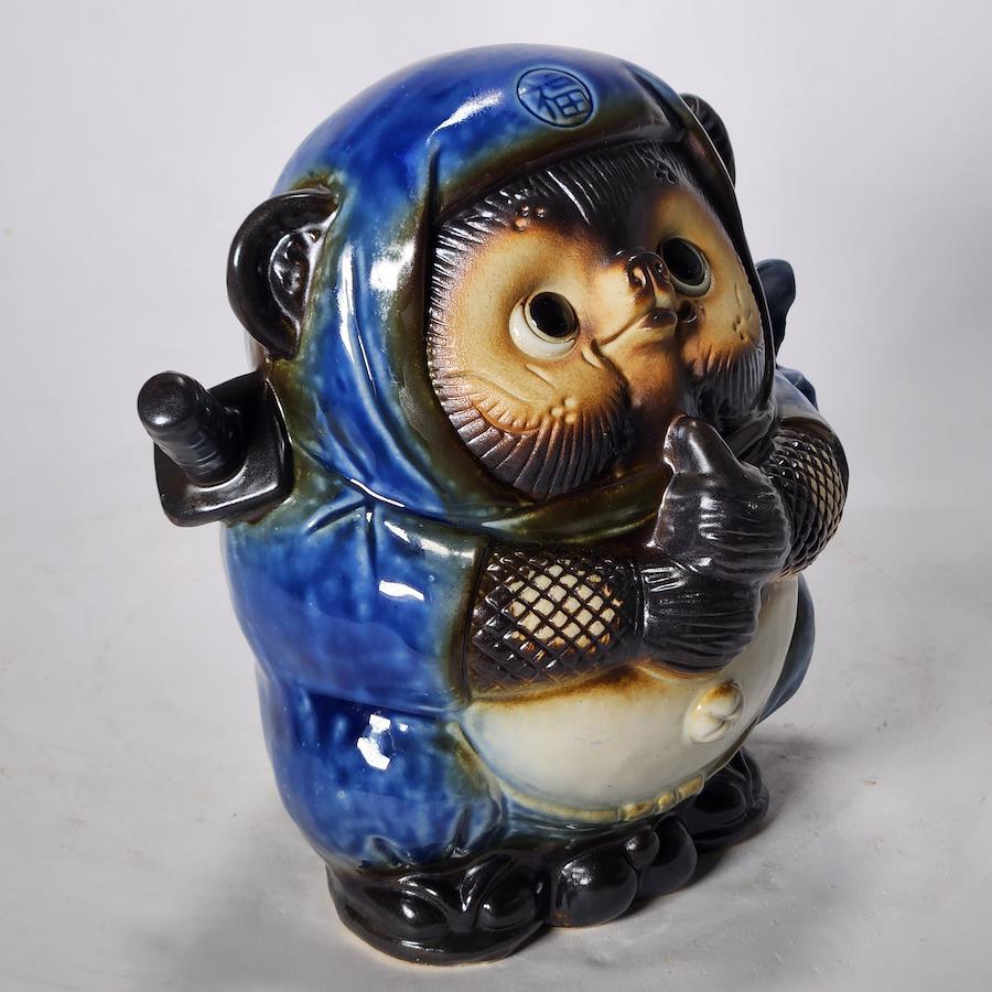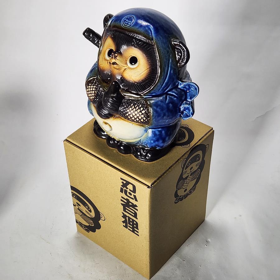 信楽焼 忍者狸 青 5号(ドローン)は、職人の手によって丁寧に仕上げられた一品です。お部屋のインテリアにぴったりとマッチし、独特の美しさと個性を体験いただけることでしょう。