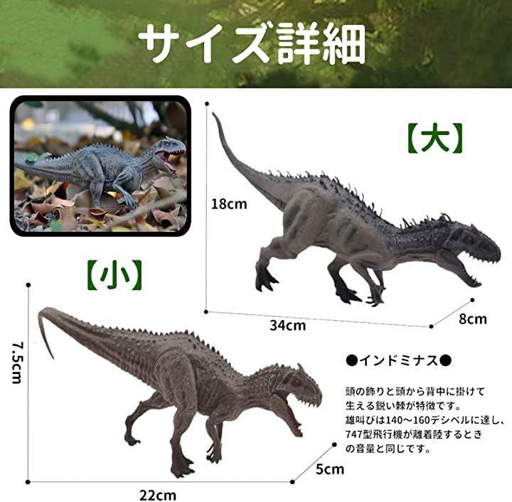 ・恐竜フィギュアの子供タイプインドミナスレックスおもちゃと架空の恐竜グレー大人インドミナスレックスの2種2体セットです。