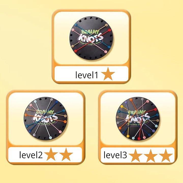 このロープパズルゲームには 3 段階の難易度があり、問題解決のための様々な対話型のチャレンジを提供します。