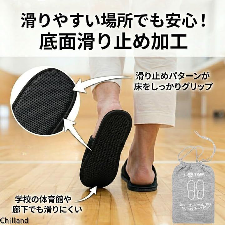 屋内用携帯スリッパとして幅広い用途に対応します。