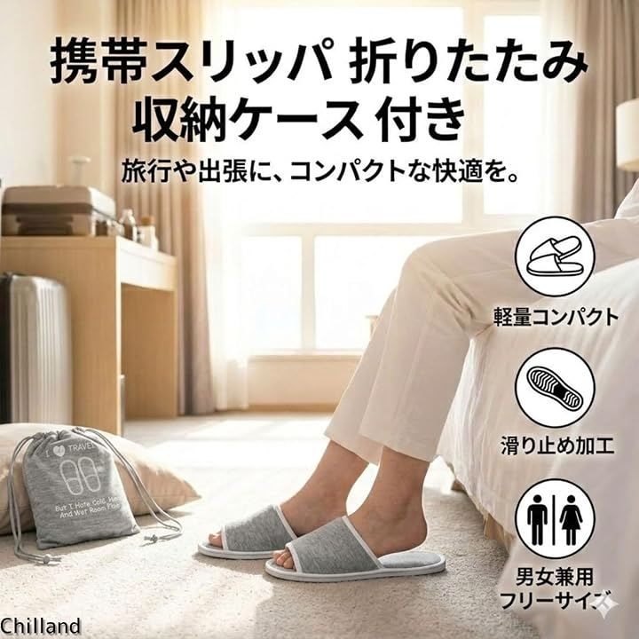 折りたたみスリッパ 携帯スリッパ 収納袋付き 収納ケース付き 軽量 コンパクト 男女兼用 旅行 出張 学校行事 室内履き 滑り止め加工