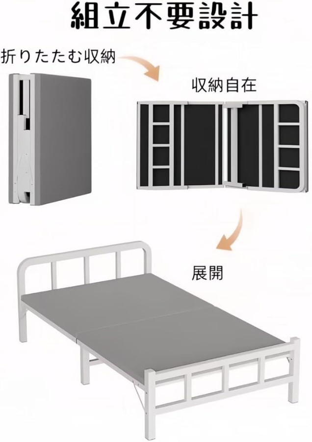 使用時はフルサイズのベッドとして快適に寝れる一方、非使用時はコンパクトに折り畳むことが可能。