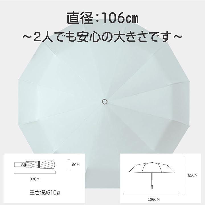 「優れた性能」 晴れた日にはUPF50+ UVカット率は99%、遮光で活躍し、雨が降っても撥水加工はもちろん、強い風にも強い12本骨を採用しています。
