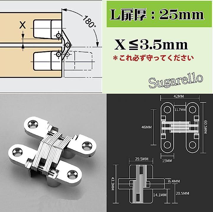 180度の開閉角度がありますので折り畳みドアや収納式テーブルなどの制作にお使いください。