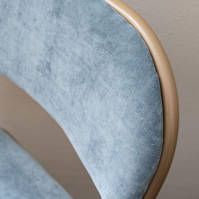 上品な色合いのスチールと高級感を感じるベロア調の生地がハイセンスな空間を演出。
