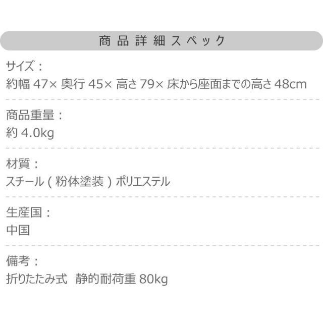約幅47×奥行45×高さ79cm(床から座面までの高さ48cm)