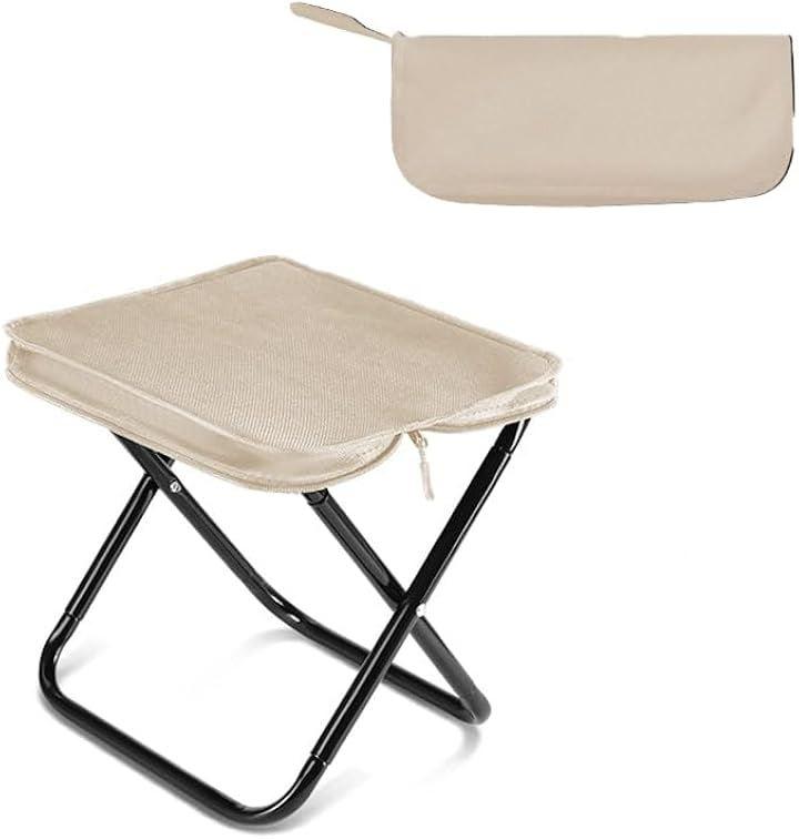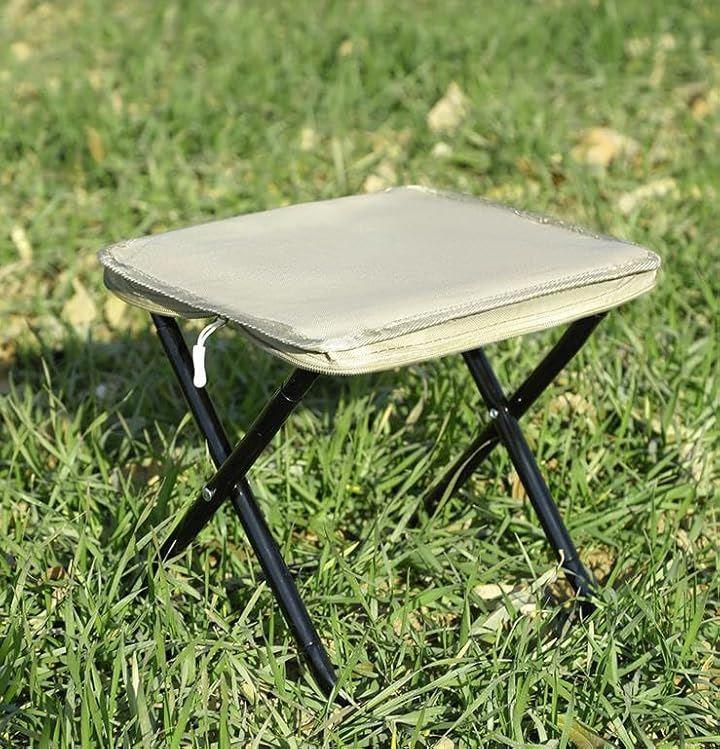 アウトドアでの快適な休息を提供する折りたたみ式キャンプスツール。