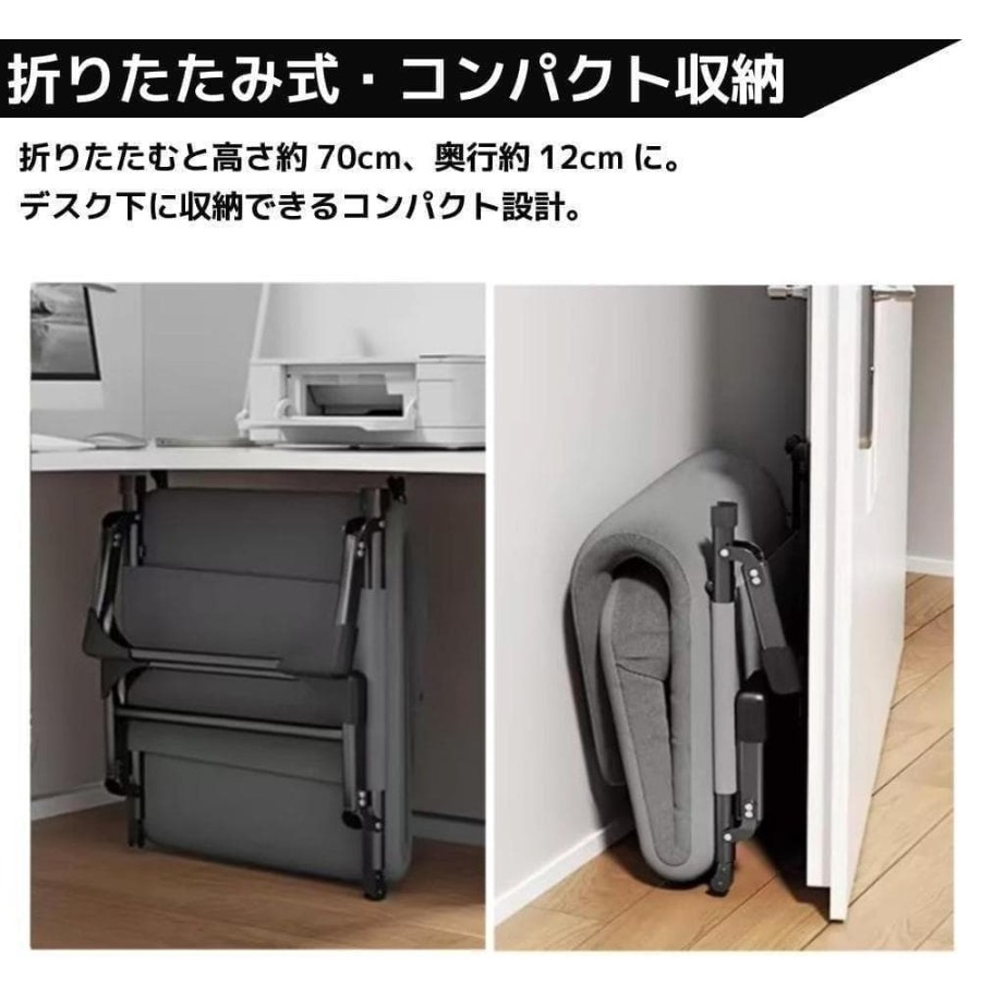 折りたたみコンパクト収納:折りたたむと高さ約70cm/奥行約12cm。デスク下やすき間、クローゼット横にも。