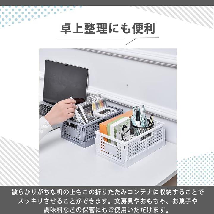 「卓上整理にも便利」散らかりがちな机の上もこの折りたたみコンテナに収納することでスッキリさせることができます。