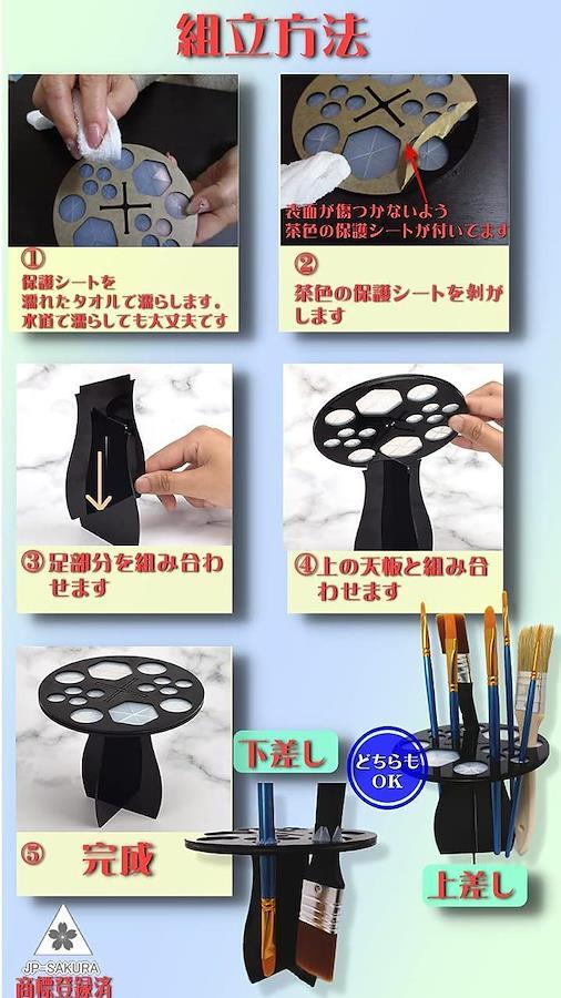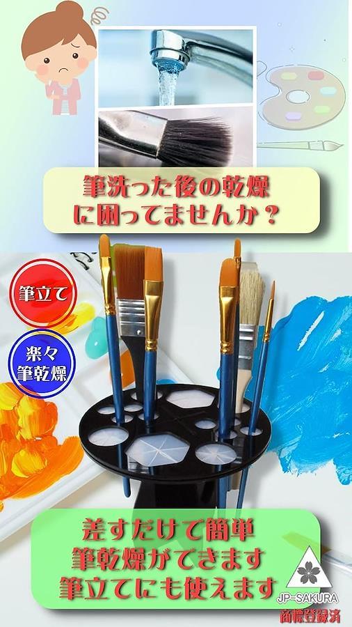収納に便利な折り畳めるバケツ 持ち運びに便利な取っ手付き、 バケツの淵には筆置き用のくぼみがあり筆が置ける設計になっています。