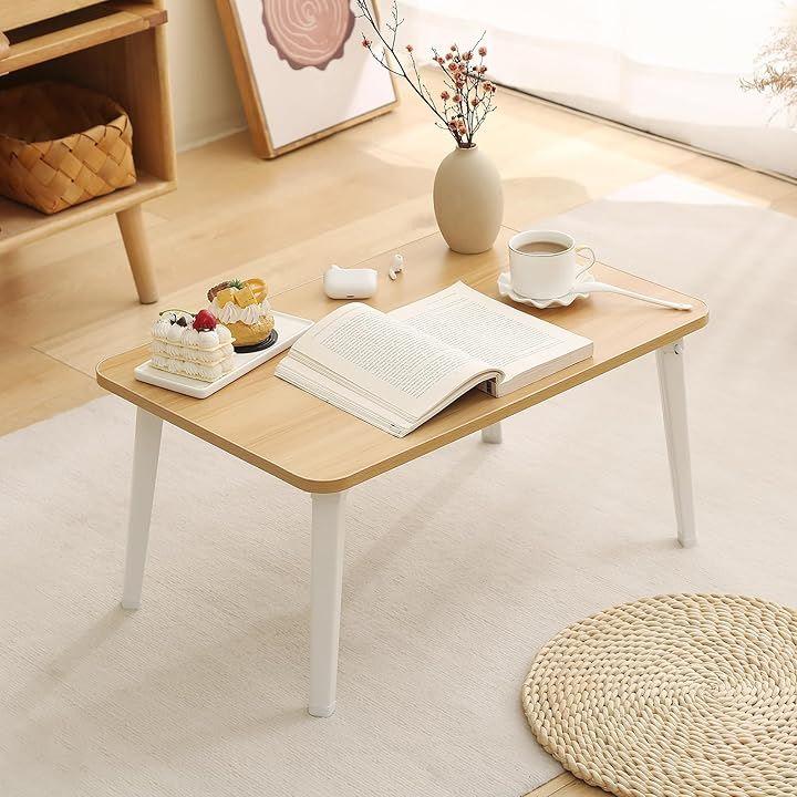 「折りたたみ式」:L THOOH ちゃぶ台の足が折りたためて、折りたたみ机ば厚さ約4.5cmになるので、ベッドの下などの隙間などに収納でき、便利です。