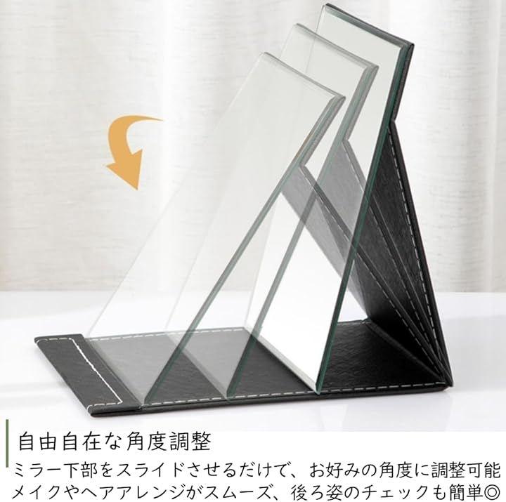 「自由自在な角度調整で快適メイク」ミラー下部をスライドさせて角度を自由自在に調整。