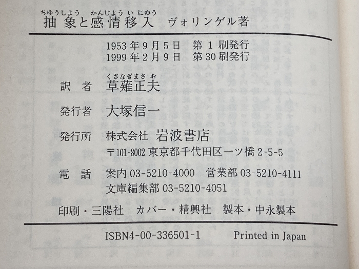 商品名:抽象と感情移入: 東洋芸術と西洋芸術 (岩波文庫 青 650-1) 岩波書店 ヴォリンゲル