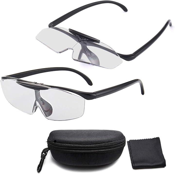 「メガネ型ルーペ」メガネの上から掛けられるメガネ型拡大鏡です。