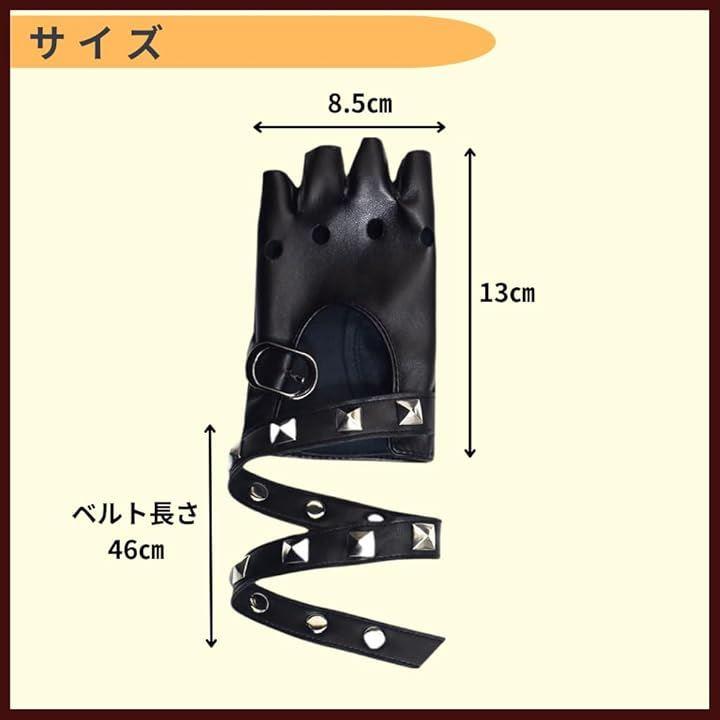 指なし手袋 革 レディース グローブ コスプレ フィンガーレスグローブ スタッズ付き フリーサイズ