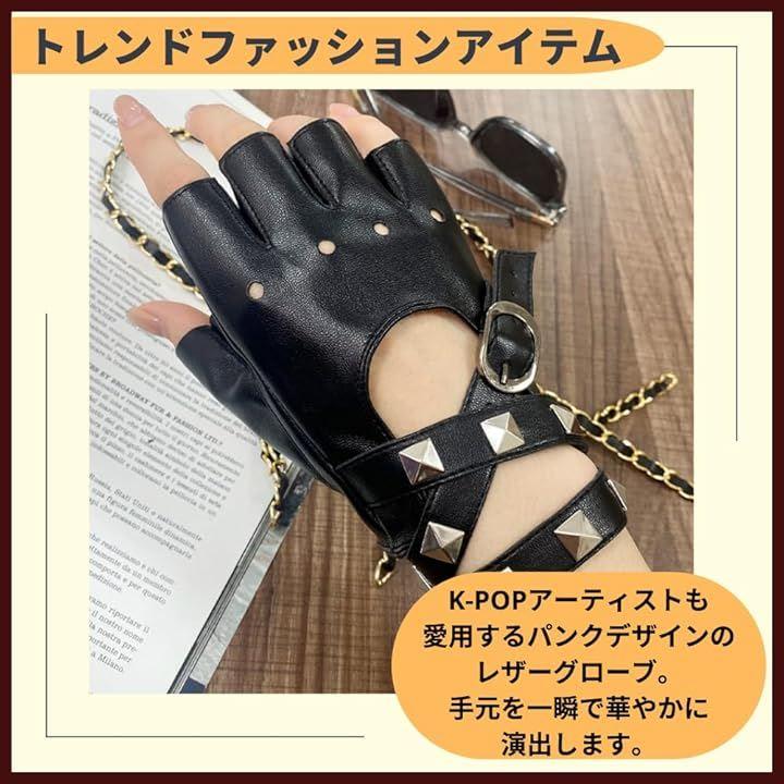 「トレンドファッションアイテム」K-POPアーティストも愛用するパンクデザインのレザーグローブ。
