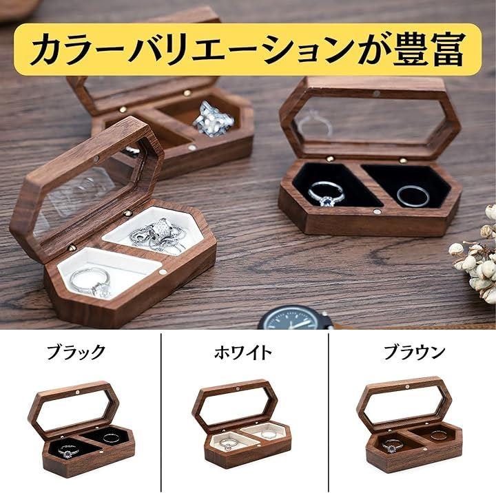 「Crystal craft ペアリング収納ケース」ペアリング用の収納ケースで、お洒落なデザインが特徴、結婚指輪やカップルのペアリングをスタイリッシュに収納し、ガラス蓋で中身が見えるインテリアとしても使える、ネックレスやピアスなどの小物アクセサリーにも対応するコンパクトサイズの高級感あるケース、色はブラック、ホワイト、ブラウンの3色展開。