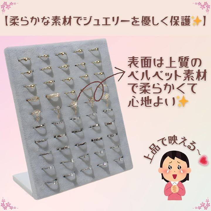「最大50個のアクセサリーを美しく収納」50個の穴を備え、指輪やピアスを種類別にスッキリ陳列。