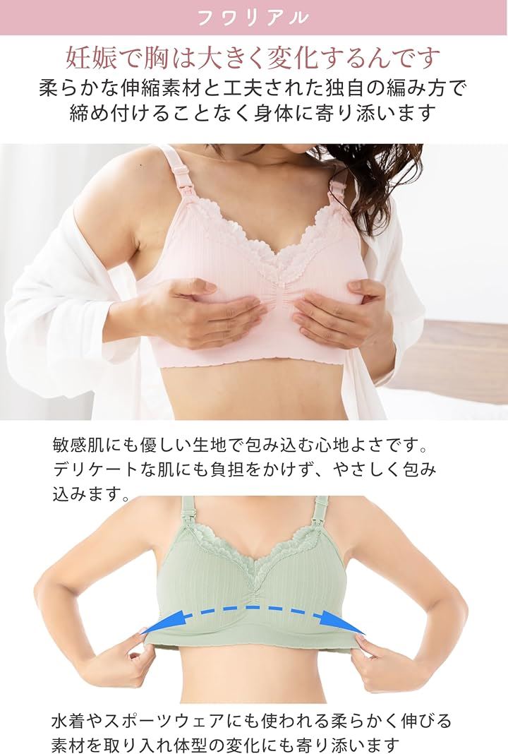 「産後のママを優しくサポートする授乳ブラ」フワリアルは、産後の体型変化に寄り添い、授乳中のママの快適さを追求した授乳ブラです。