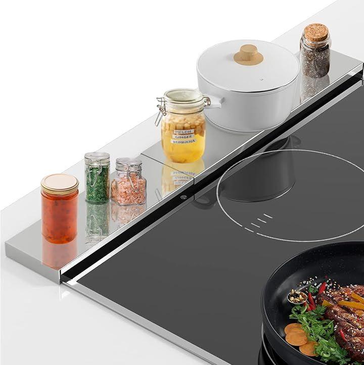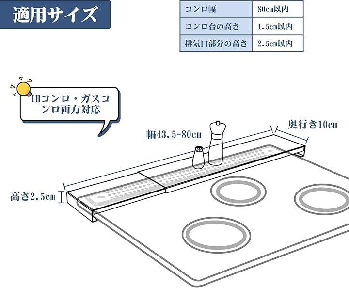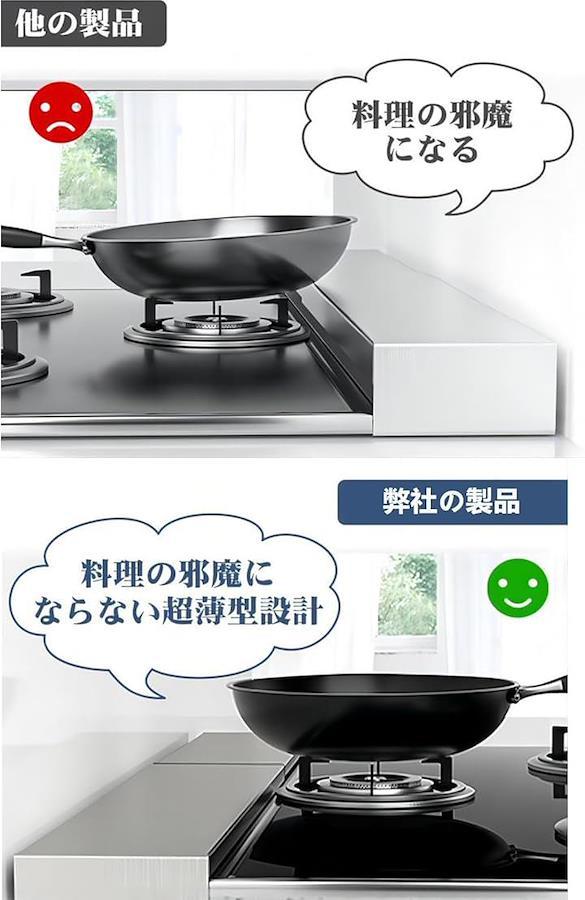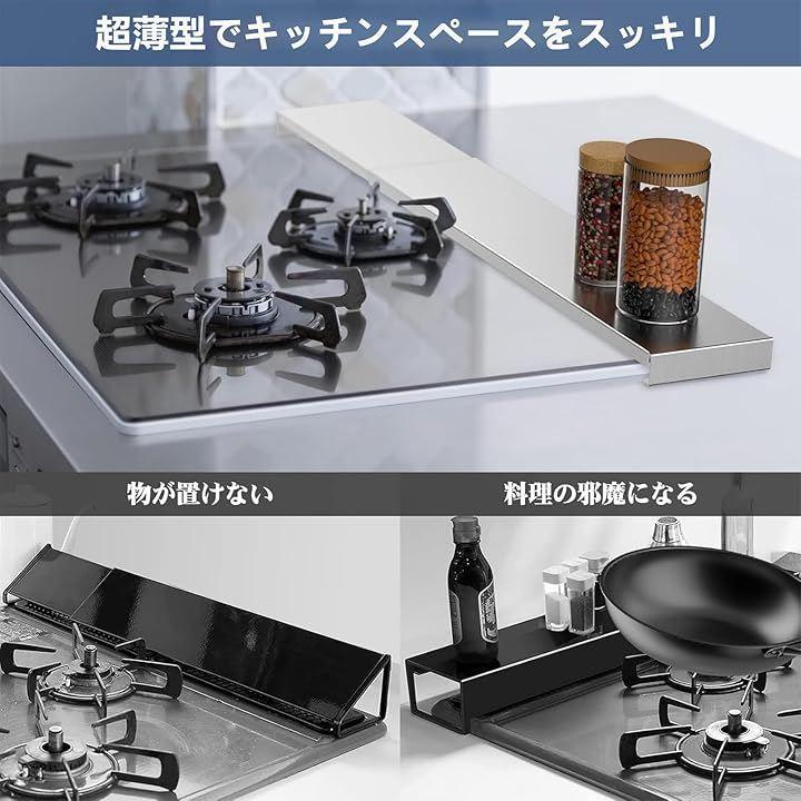「多機能でコンロ周りが進化」コンロカバーとして使いつつ、調理器具置き場に・調味料棚に・防汎ガードに…と1台3役。