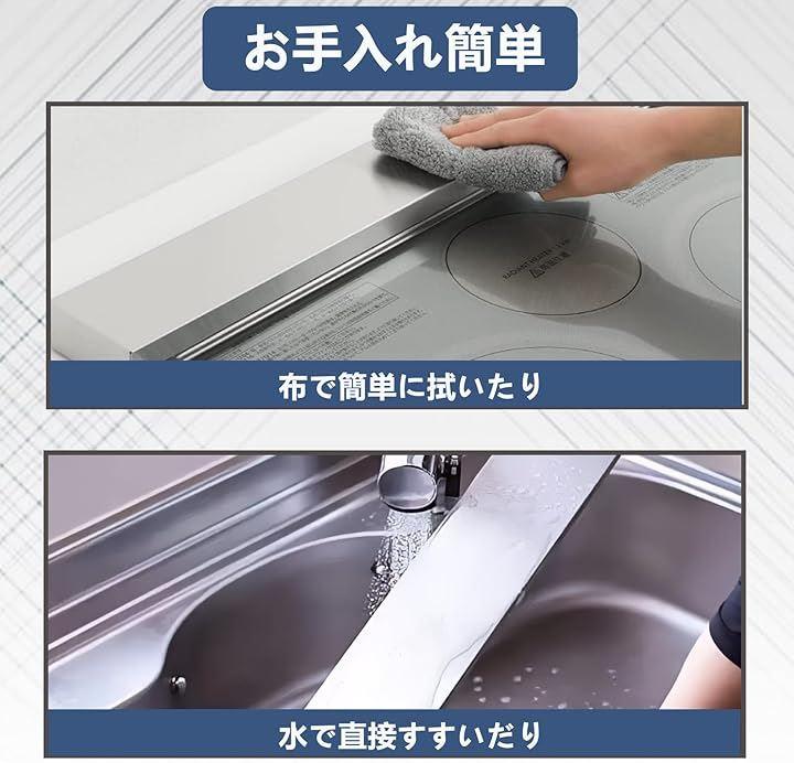 「頑丈なステンレスで長寿命」ステンレスを採用。コンロカバーの表面は鋼線引き加工で傷に強く、耐熱200℃・耐荷重20kgの耐久性。