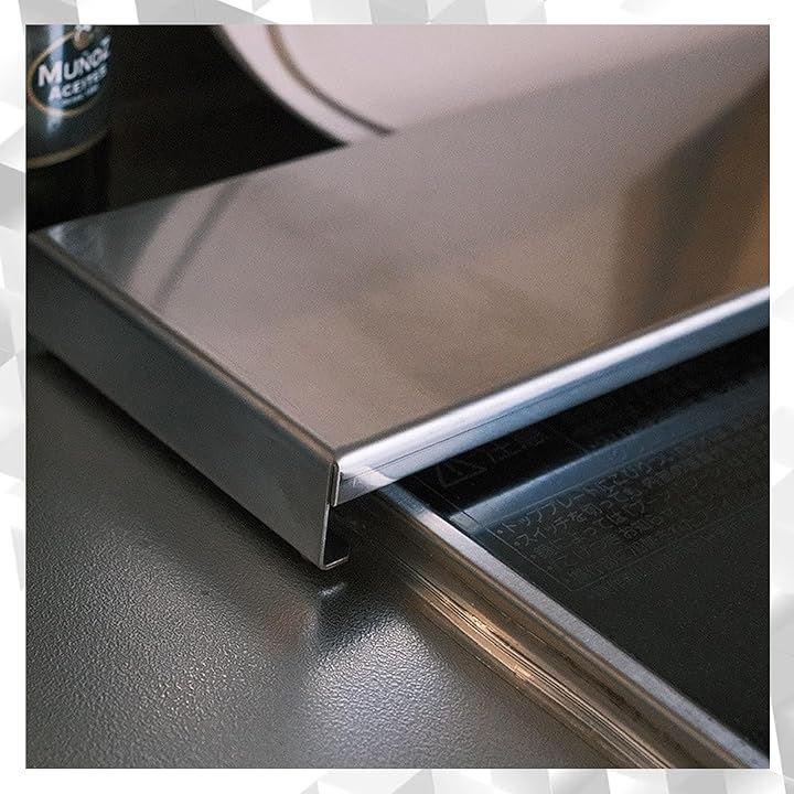 「調味料ラックに早変わり」奥行き10cmの広々トッププレート。醤油ボトルやフライパンも置ける排気口カバーxxは、収納不足解消の救世主。