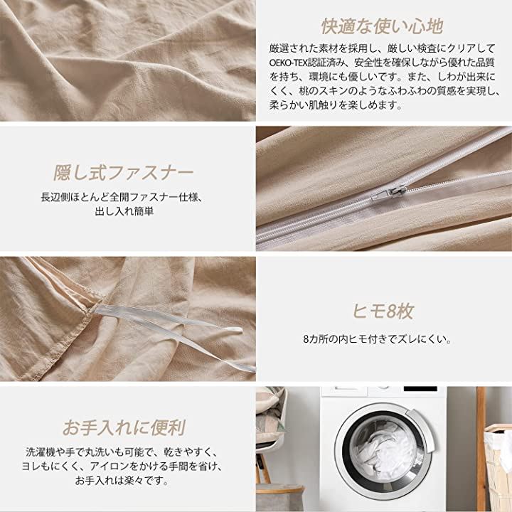 掛け布団カバー 単品 水洗い加工 ピーチスキン おしゃれ 掛ふとんカバー 防ダニ 抗菌 防臭 ヒモ8枚