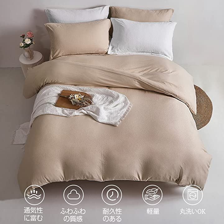 ・「全7色」 白 ┃ グレー ┃ ピンク ┃ むらさき ┃ ブルー ┃ ライトカーキ ┃ セージグリーン・「3サイズ」シングル(150x210cm)┃セミダブル(170x210cm)┃ダブル(190x210cm)・「心を込めた設計」掛ふとんカバー:片側全開仕様とYKKファスナーを採用、スムーズな開閉と出し入れを実現、8カ所の内ヒモ付きでズレになりにくい。