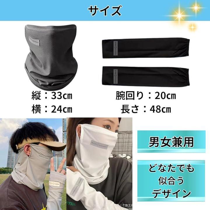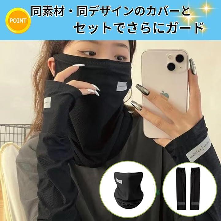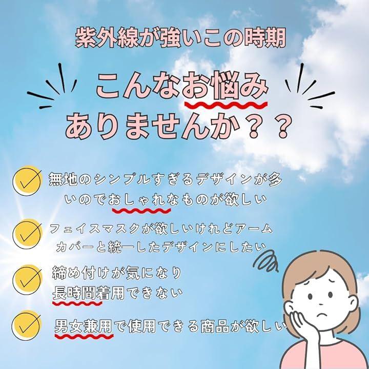 フェイスマスクとアームカバーを同素材・同デザインで揃えることで、全体のコーディネートにも統一感が出せます。