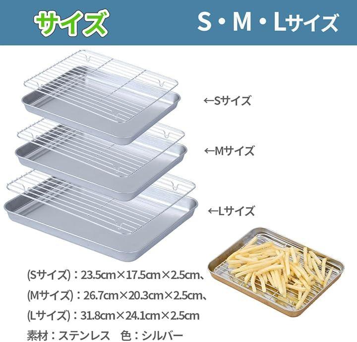 「商品詳細」サイズ:(Sサイズ)23.5cmx17.5cmx2.5cm、(Mサイズ):26.7cmx20.3cmx2.5cm、(Lサイズ):31.8cmx24.1cmx2.5cm 素材:ステンレス 色:シルバー サイズバリエーション:Sサイズ、Mサイズ、Lサイズ