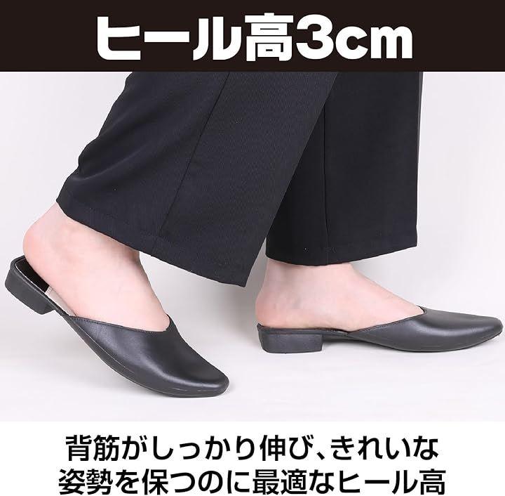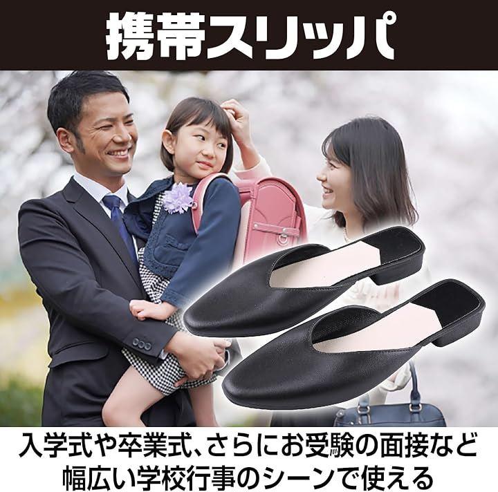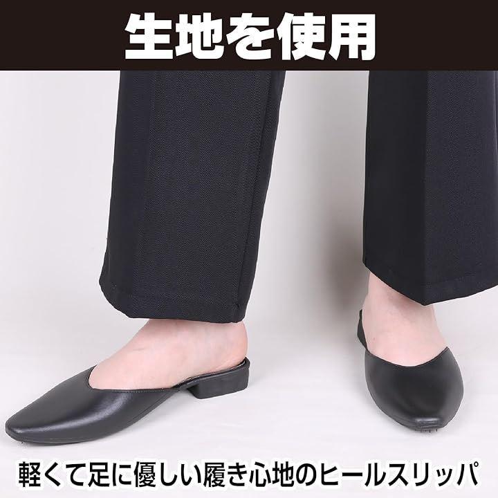 「おしゃれでフォーマルなシーンに最適なヒールスリッパ」 卒業式や入学式、授業参観などの学校行事にふさわしい、上品なブラックのヒールスリッパです。