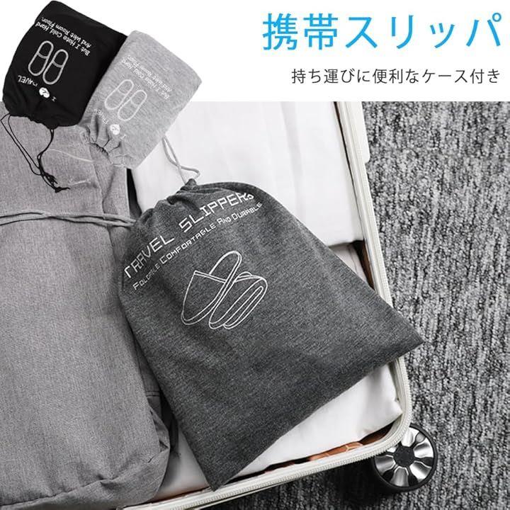 「持ち運びに便利な折りたたみスリッパ」持ち運びに便利なケース付きの折りたたみスリッパ。