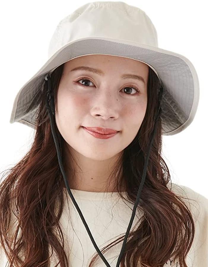 ・*アウトドアのハットだから、アウトドアウェアじゃないと合わないんでしょう?「いやいや、ちょっと待ってください。」これが、ワンピやスカートにもよく似合うんです。