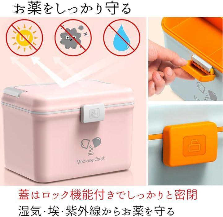 「中のお薬をしっかり守る」蓋はロック機能付きでしっかりと密閉できる救急箱。