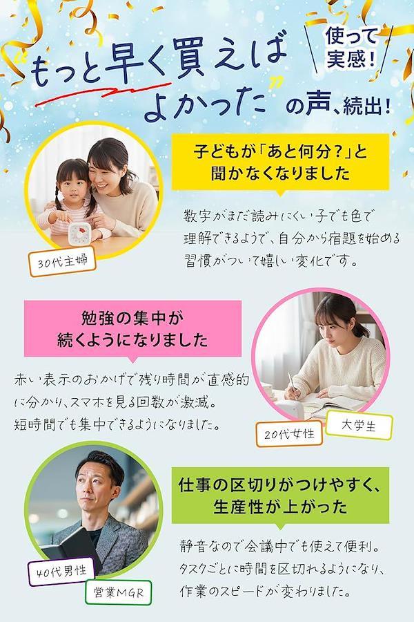 特に集中して作業したいときや、子どもが時間の感覚を身につける場面でその真価を発揮します。