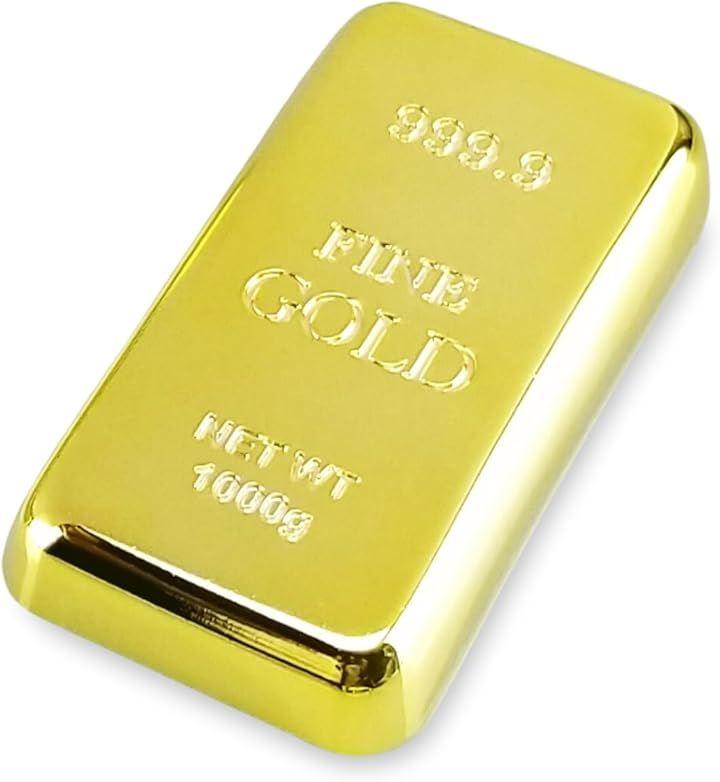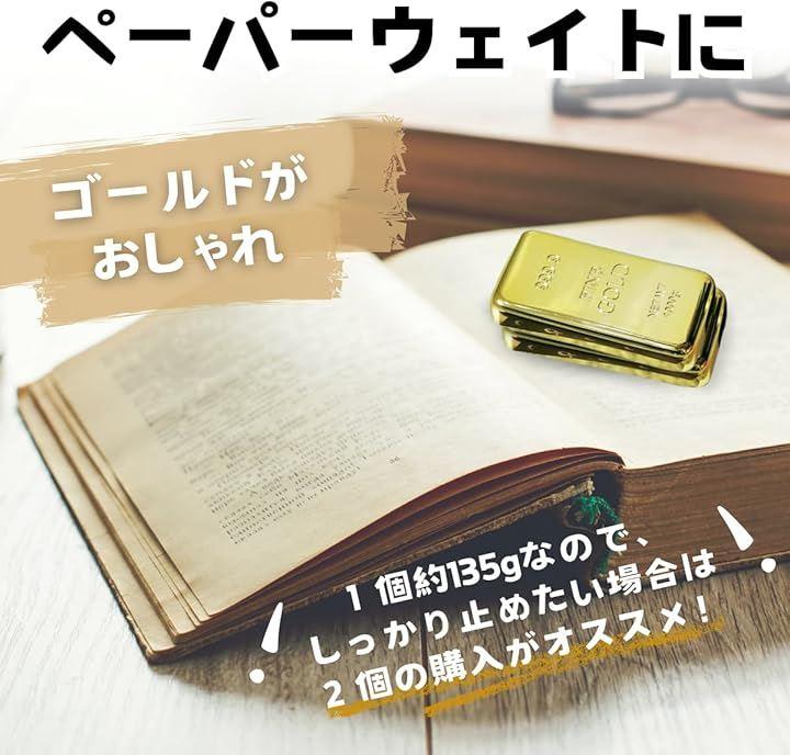 ペーパーウェイトとしての実用性 この金の延べ棒レプリカには「1000g」と刻印されていますが、実際の重量は約135gで、ペーパーウェイトとして使うのに最適です。