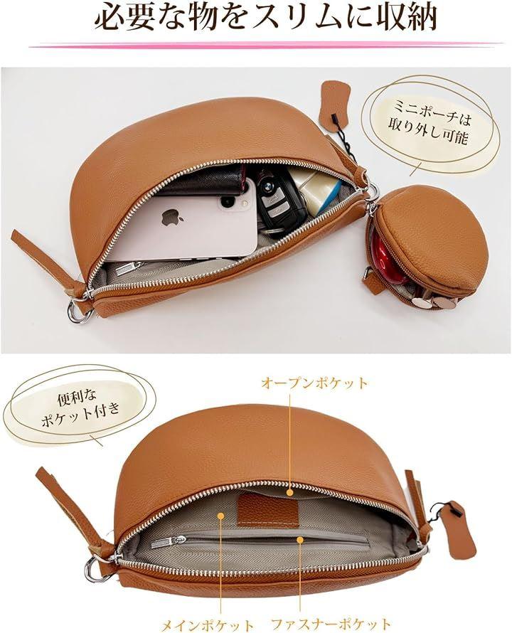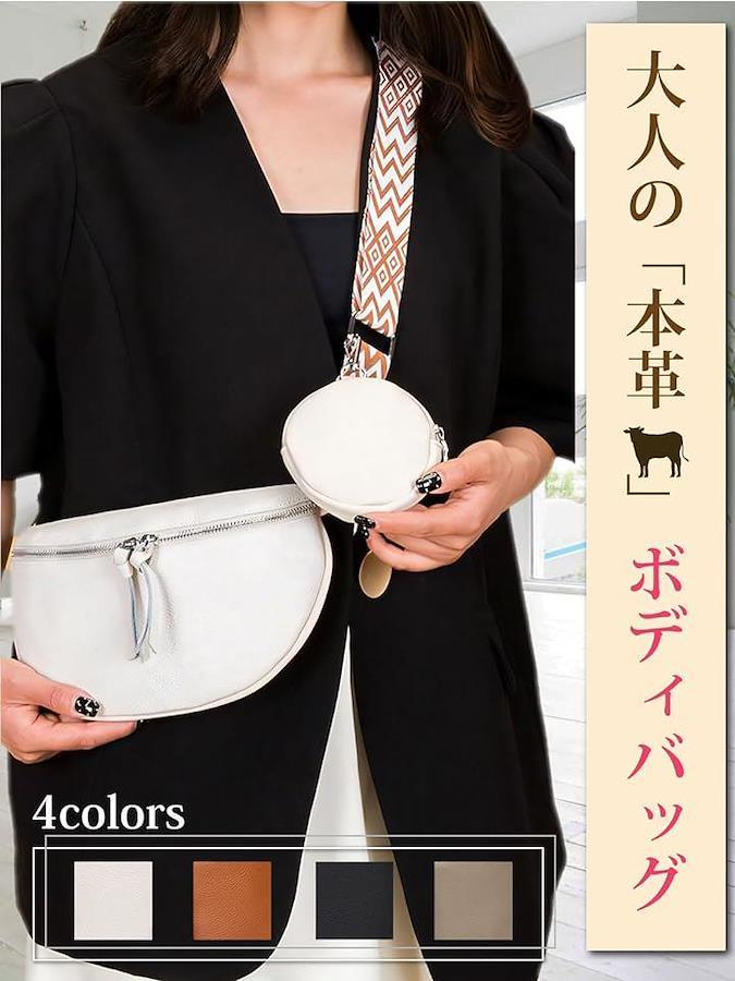 「大人の本革ボディバッグ」 コンパクトで日常使いしやすい大人の美フォルムボディバッグ。