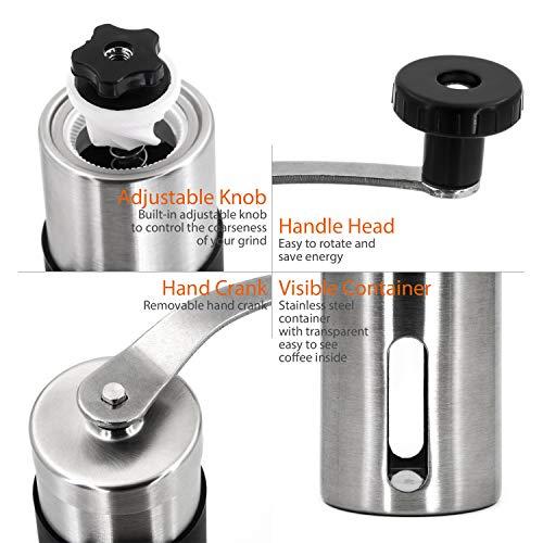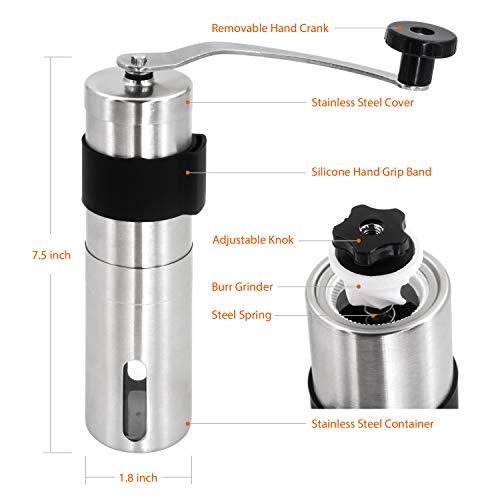 通常1-5営業日で発送:新しい大容量30gミニマニュアルコーヒーグラインダーステンレススチールコーヒー豆ハンドクランクポータブルミル、滑り止め用、グリップバンド、家庭用、オフィス用、屋外キャンプ、ハイキング、旅行用