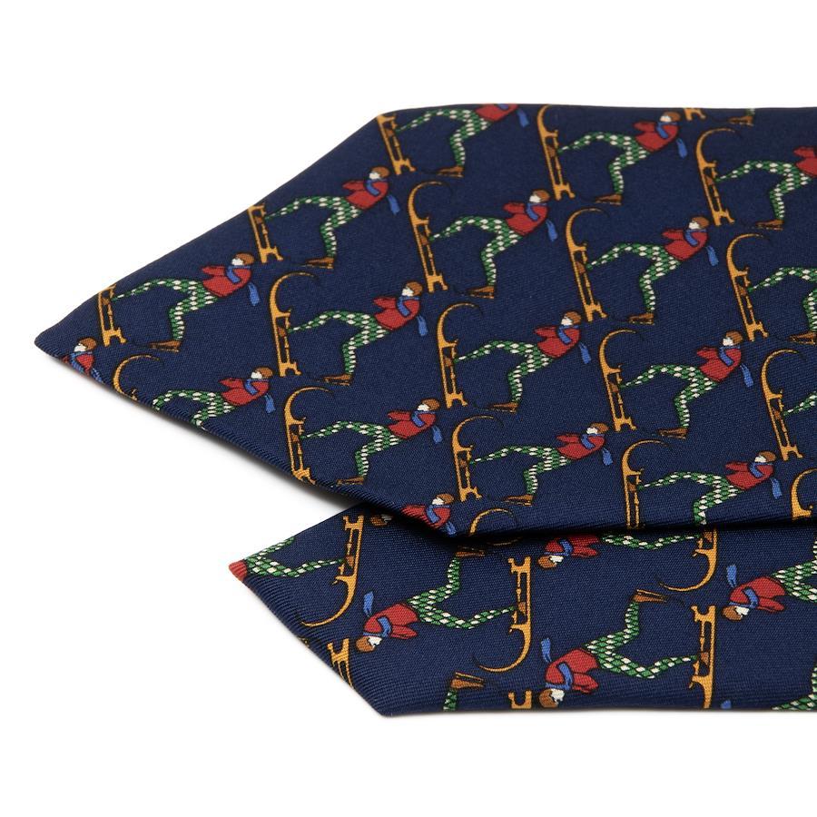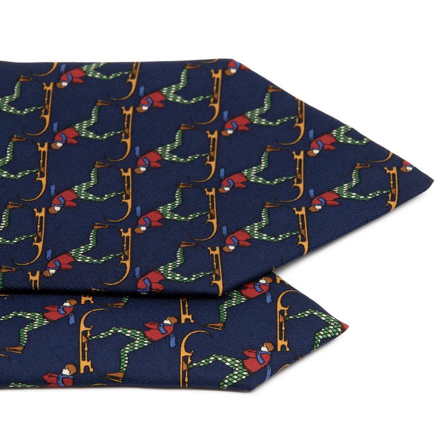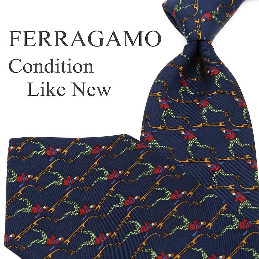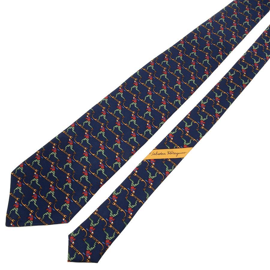 こちらは、スキーを楽しむ姿が胸元で鮮やかに躍動する、フェラガモのネクタイでございます。