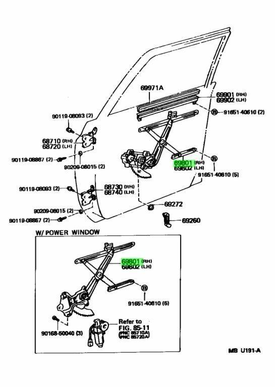 トヨタ純正 ランドクルーザー 80 FJ80 FZJ80 HDJ80/81 HZJ80/81 右側 運転席側 フロントドア ウインドウ レギュレータ レギュレーター LX450