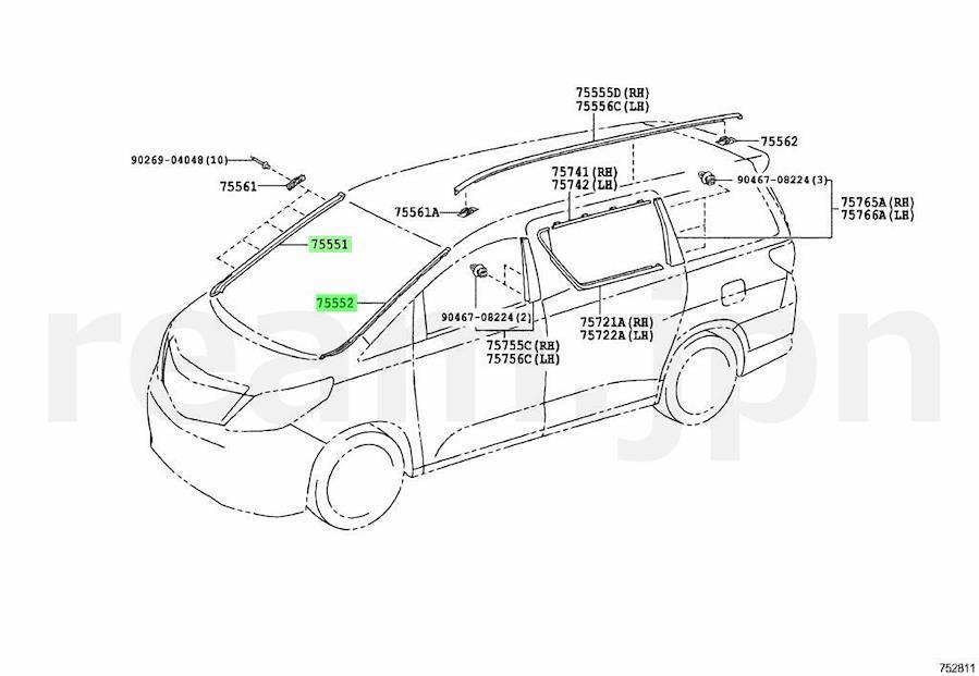 トヨタ純正 20 20系 アルファード ANH20 ANH25 ATH20 GGH20 GGH25 フロントガラス モール サイド ルーフ フィニッシュ ドリップ 左右