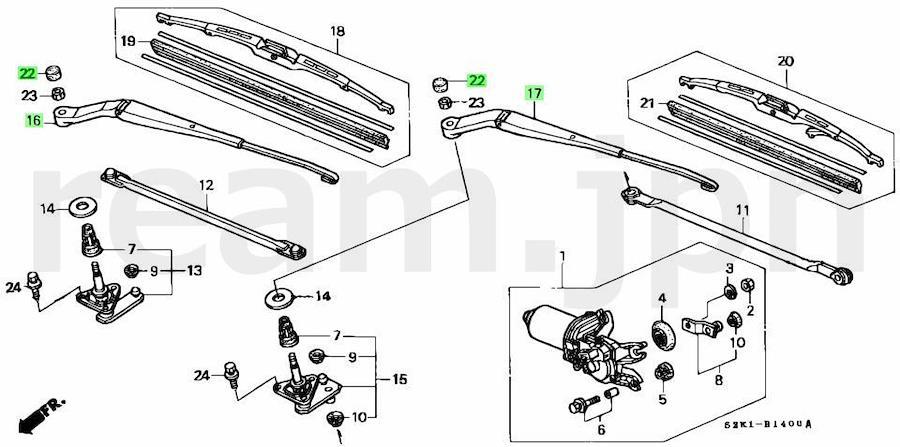 ホンダ純正 N-BOX カスタム JF1 JF2 フロントワイパーアーム キャップ付き 左右 Nボックス ワイパー