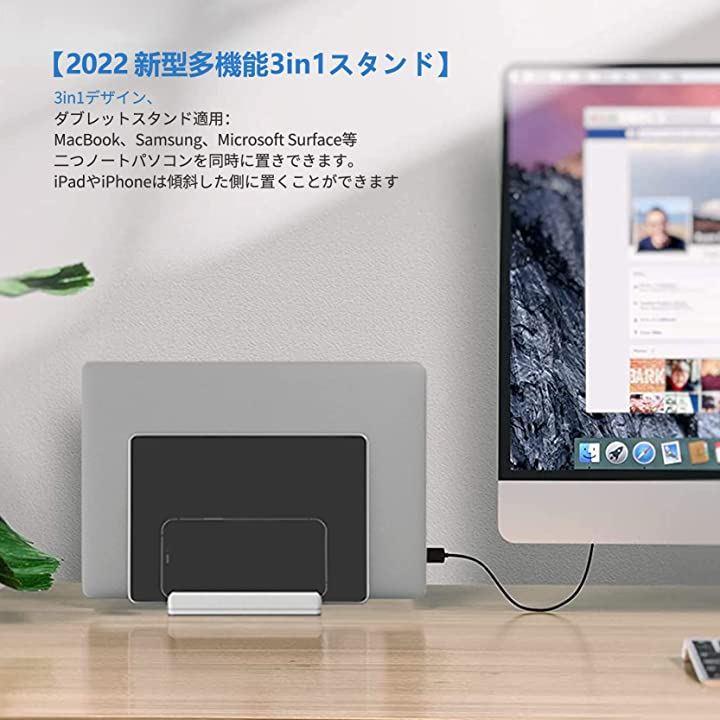 ・「2022 新型多機能3in1スタンド」アップグレードされたスタンドは、2台のノートパソコンを同時に収納でき、さらに、スマートフォンやアイパッドをサイドの凹みに入れ、映画鑑賞や仕事ができ、製品体験を高めることができます