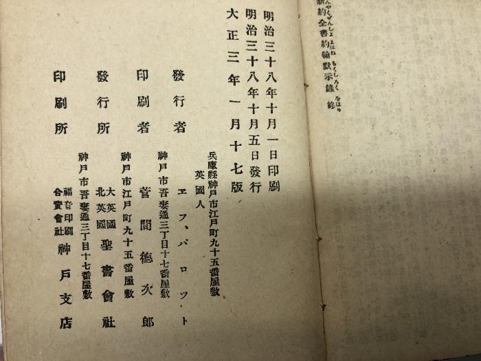 商品名:新約聖書 F・パロット 神戸市江戸町 大英国・北英国聖書会社 大正3年7版