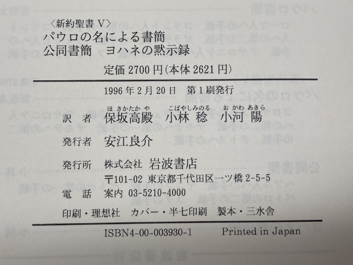 商品名:新約聖書〈5〉パウロの名による書簡・公同書簡・ヨハネの黙示録 岩波書店 新訳聖書翻訳委員会